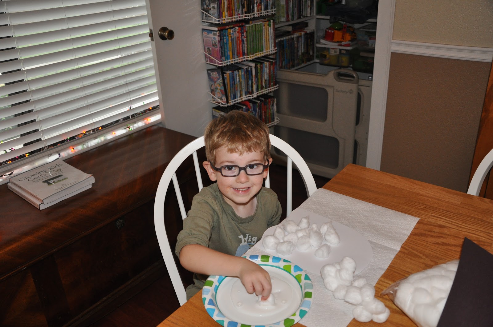 We decided to do a few crafts around Halloween this year. I find I do better when I actually plan it out!! This was a cute craft I found on Pinterest. The boys loved dipping the cotton balls into the glue and decorating their little ghosts. Well, Henry didn't like getting his hands sticky. He wanted to wash his hands after every cotton ball!