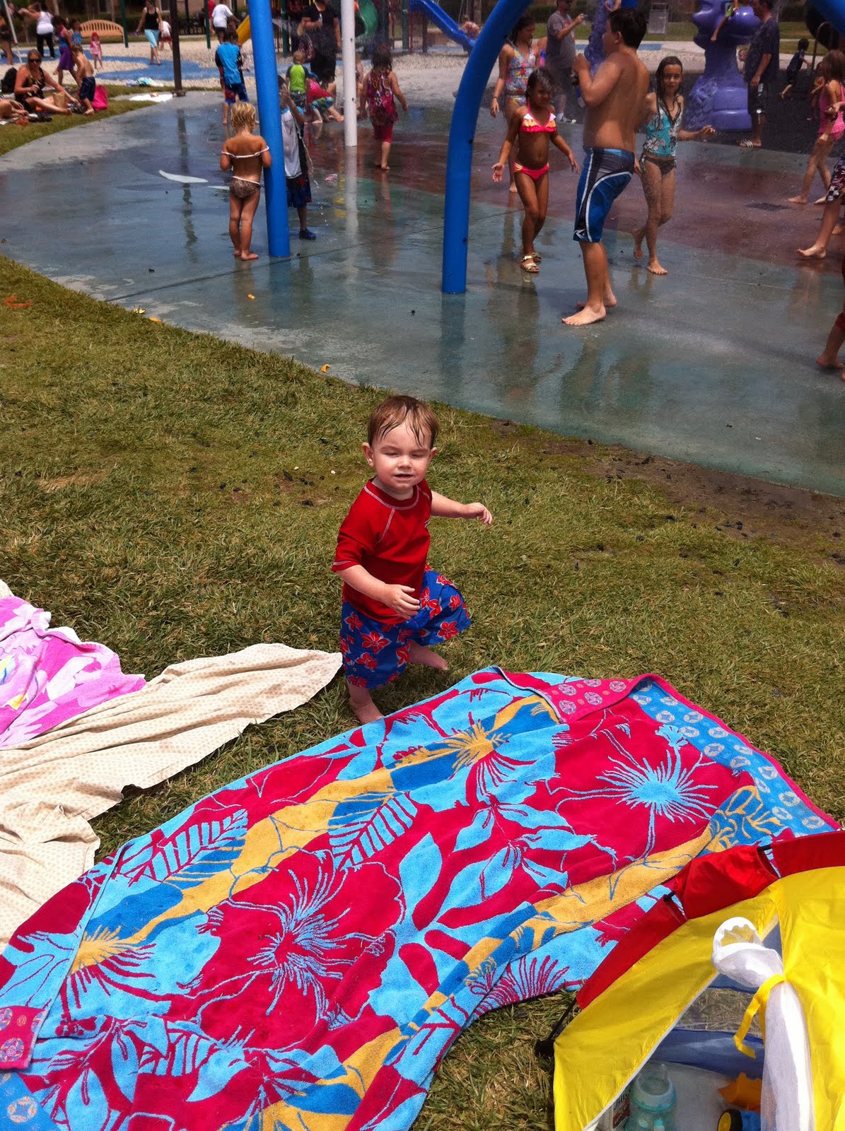 Henry at the sprinkler park. The first time we went, you couldn't keep the boy out of the water!